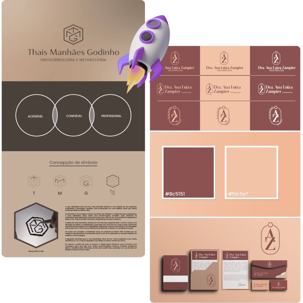 • Reconhecimento da marca: Uma identidade visual coesa e memorável faz com que você seja facilmente reconhecido por pacientes e parceiros.